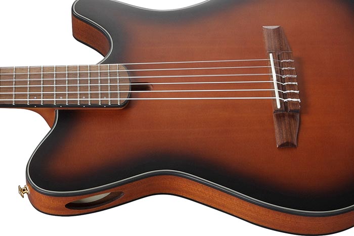 It has less feedback as there’s no sound hole on the body top. Fan bracing, which is commonly used for classical guitars, allows this guitar to have a warm and natural nylon string sound.