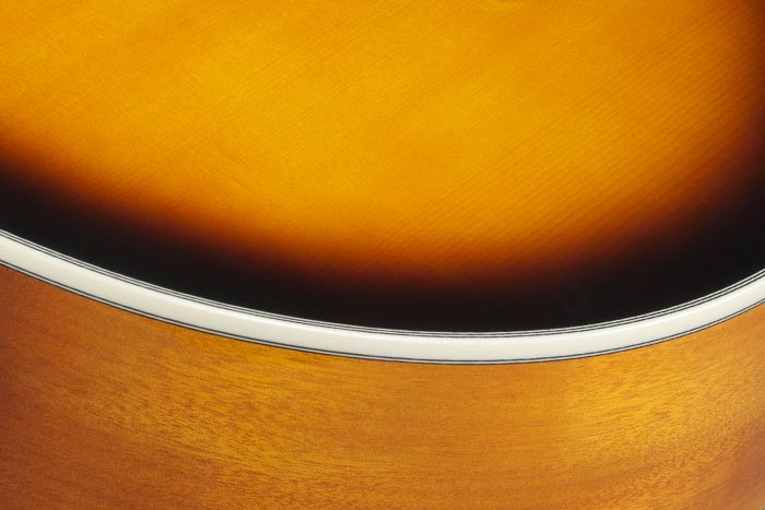The Okoume back and sides generate a woody, warm tone when the guitar is played softly or finger-picked and provide punchy high-mids with a clear projection when strummed.